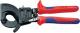 Cutting thicker cables usually requires a high handforce. KNIPEX Ratchet Cable Cutters facilitate this work by means of a two-stage ratchet drive and a handle with support (model 95 31). The cable cutter can be rested on a solid ground so that additional body weight can be applied to lower arm musculature fatigue.
